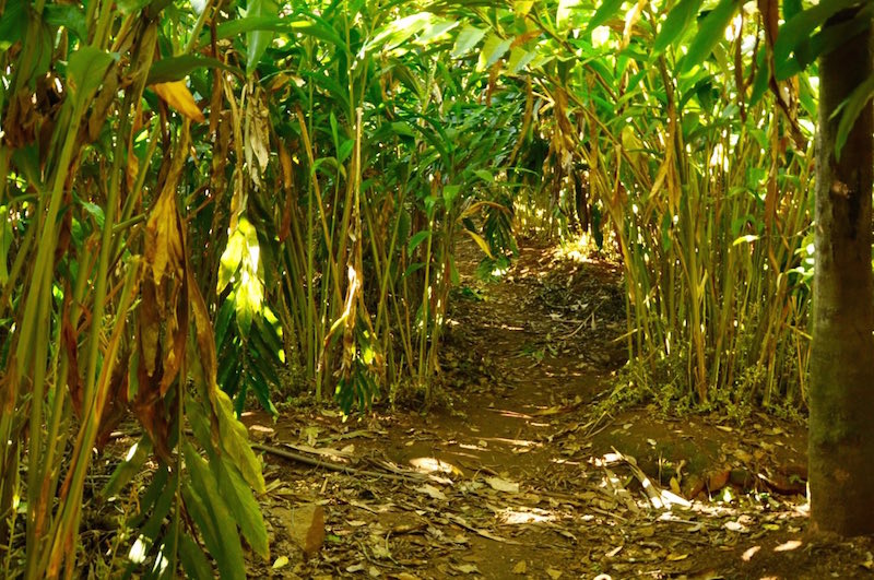 It was interesting to see that cardamom grows in clusters on stems that trail on the ground, while pepper grows on vines that wind themselves around trees. We also dug up fresh ginger from the ground, crushed a leaf from an allspice plant to inhale it's lovely aroma and peeled off a bit of cinnamon bark to freshen our breath!