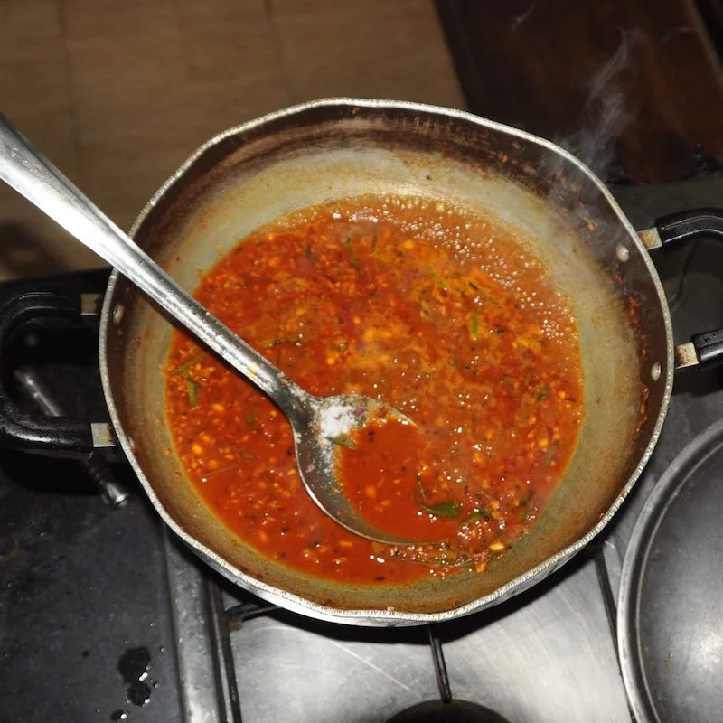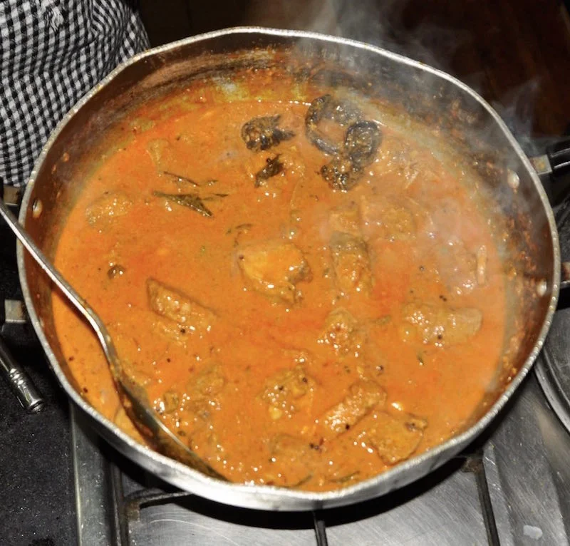 Chef Anish gave us a cooking lesson in the plantation kitchens, showing us how to make Kerala's famous fish curry. It is one of my all time favourite dishes which I love to serve with coconut rice. Chef Anish uses kokum - a sour dried fruit used widely in Kerala to add tartness to curries. I have substituted tamarind here as it has a similar flavour and is easier to buy. This is his simple, delicious recipe, given step by step, just the way he showed us!