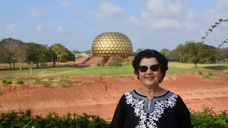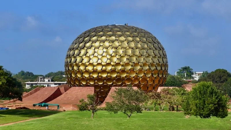 Just outside the city of Pondicherry is Auroville, the town founded by Sri Aurobindo as a place where people from all over the world could come to live in harmony. The centre of the town is the Matrimandir, a giant golden dome designed to be a place for concentration and meditation. The interior is not open to visitors, but we could see it from the outside during our visit. Auroville has a visitors centre where we learned about its history and ideals, visited boutiques that sold handicrafts made by residents, and could buy books by Sri Aurobindo and other writers from Auroville.