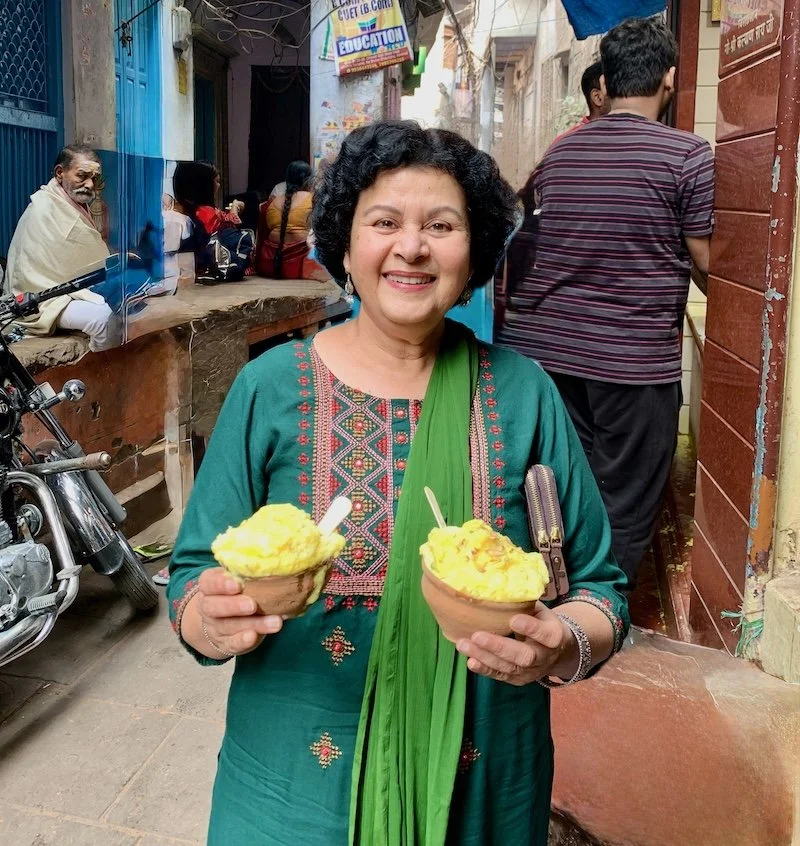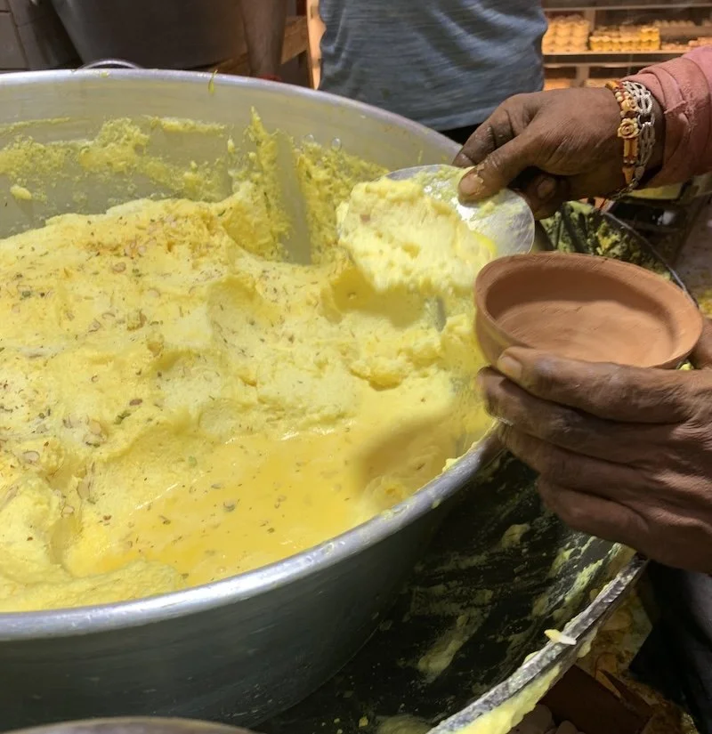 Varanasi is well known for its exceptional Mithai or sweets. Some of the shops are huge, showcasing irresistible Laung lata, lal Peda and parval mithai, while others specialize in only one type and are just tiny little storefronts opening onto the narrow lanes. The sheer variety is mind boggling and it is a delightful experience to taste as many as possible! We were lucky to be in Varanasi during the short season that Malaiyyo is made. This unique, creamy, frothy concoction is light as air, melts on the tongue and tastes like a rasmalai that went to heaven and hugged a cloud! It is served in small clay cups that add their own unique earthy aroma to the dish. I made sure to get two and you should too!