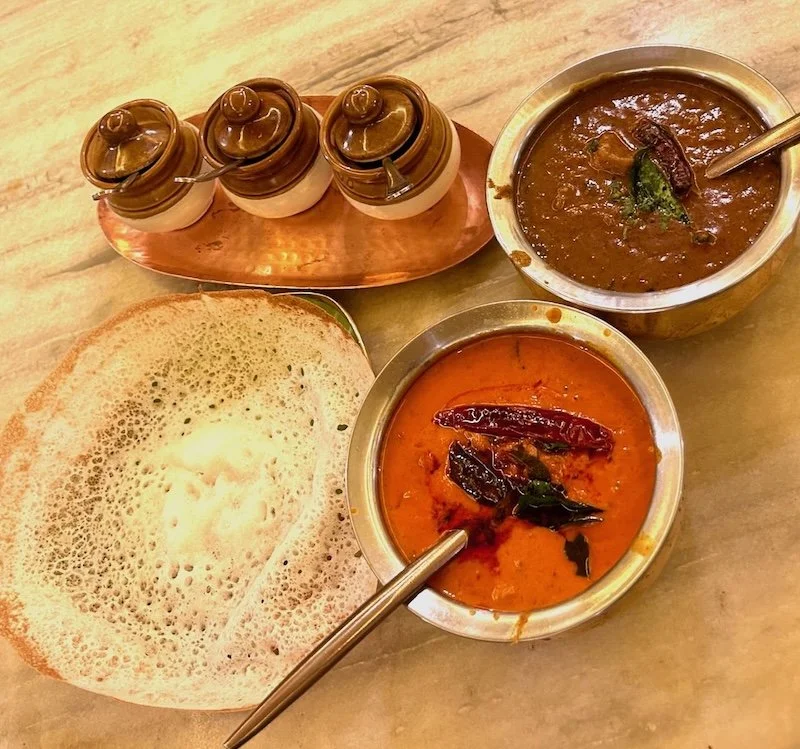 When it came to food, we were spoiled for choices! With so much variety to choose from at our guesthouse, and great restaurants to try out in the city, we never ran out of options. The first photo up top is the kind of meal we were served every day at the IIT Madras Bose Einstein guesthouse where we were staying. The variety of dishes served there every day is mind boggling! For authentic South Indian food, we usually headed to our favourite restaurant Savya Rasa, where we indulged in crisp appams, rich mutton curries and fiery fish curries. If you’ve never tried South Indian food before, you are in for a treat. Creamy coconut milk, an array of spices, red hot chilies and the sour tang of tamarind give every bite an explosion of flavour!