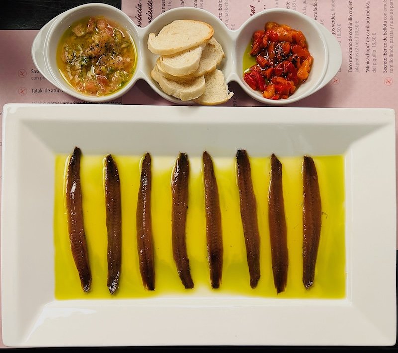We had so much amazing and unusual tapas that it was difficult to choose a favourite. Being partial to fava beans, I loved the roasted red peppers and marinated fava beans on toast and the anchovies in olive oil with marinated peppers. The joy of being in Spain is the chance to hop from one bar to another, sampling tapas and sipping sangria along the way!