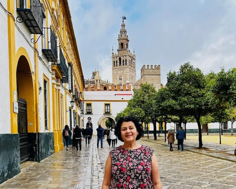 We encountered constant reminders of Seville’s Moorish past. Its most famous landmark is the bell tower of the cathedral, known as La Giralda, which was once the minaret of a mosque. After the Christian reconquest of Seville in the thirteenth century the mosque was replaced by a cathedral, but the minaret was preserved and incorporated into the new building.